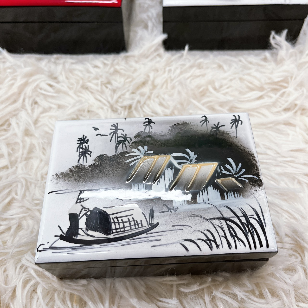 LƯU Ý: Shop giao mẫu ngẫu nhiên, khách hàng muốn lựa chọn mẫu vui lòng nhắn tin riêng cho shop nhé ạ. HỘP ĐỰNG NỮ TRANG SƠN MÀI HÌNH CHỮ NHẬT Vỏ gỗ sơn mài vẽ tay thủ công tinh tế, nội thất bọc vải nhung đỏ sang trọng, thiết kế trang nhã, trẻ trung, thanh lịch ✪ Kích thước: 8x11x5cm ✪ Có gương phía trong để kết hợp trang điểm Hàng Việt Nam xuất nhập khẩu HÀNG CHUẨN CHẤT LƯỢNG ẢNH SHOP TỰ CHỤP, SẢN PHẨM NGOÀI ĐẸP HƠN. Luôn có nhiều ưu đãi cho Khách hàng mới và Khách hàng thân thiết Cam kết hàng giao đúng mẫu đăng trên gian hàng Sản phẩm có sẵn, thời gian gửi hàng nhanh chóng tới đơn vị vận chuyển CÓ ĐỊA CHỈ TRỰC TIẾP ĐỂ CÁC BẠN TỚI LỰA CHỌN THỎA THÍCH Uy tín - chất lượng luôn được đặt lên hàng đầu.