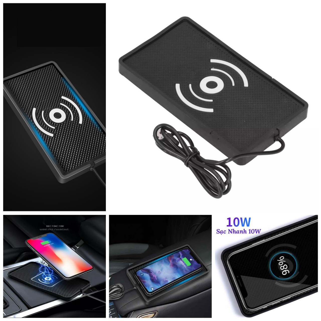 ✨(LOẠI TỐT) Đế sạc nhanh không dây Qi 10W mẫu mới thông minh tự ngắt có đệm chống sốc dùng trong xe hơi văn phòng, đồ chơi ô tô