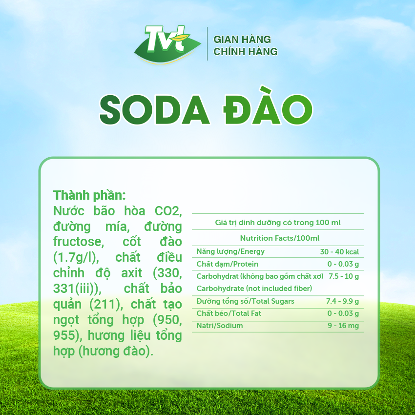 - Cung cấp năng lượng: Soda Đào TVT bổ sung thêm các thành phần dinh dưỡng khác, giúp cung cấp năng lượng tức thì cho cơ thể.