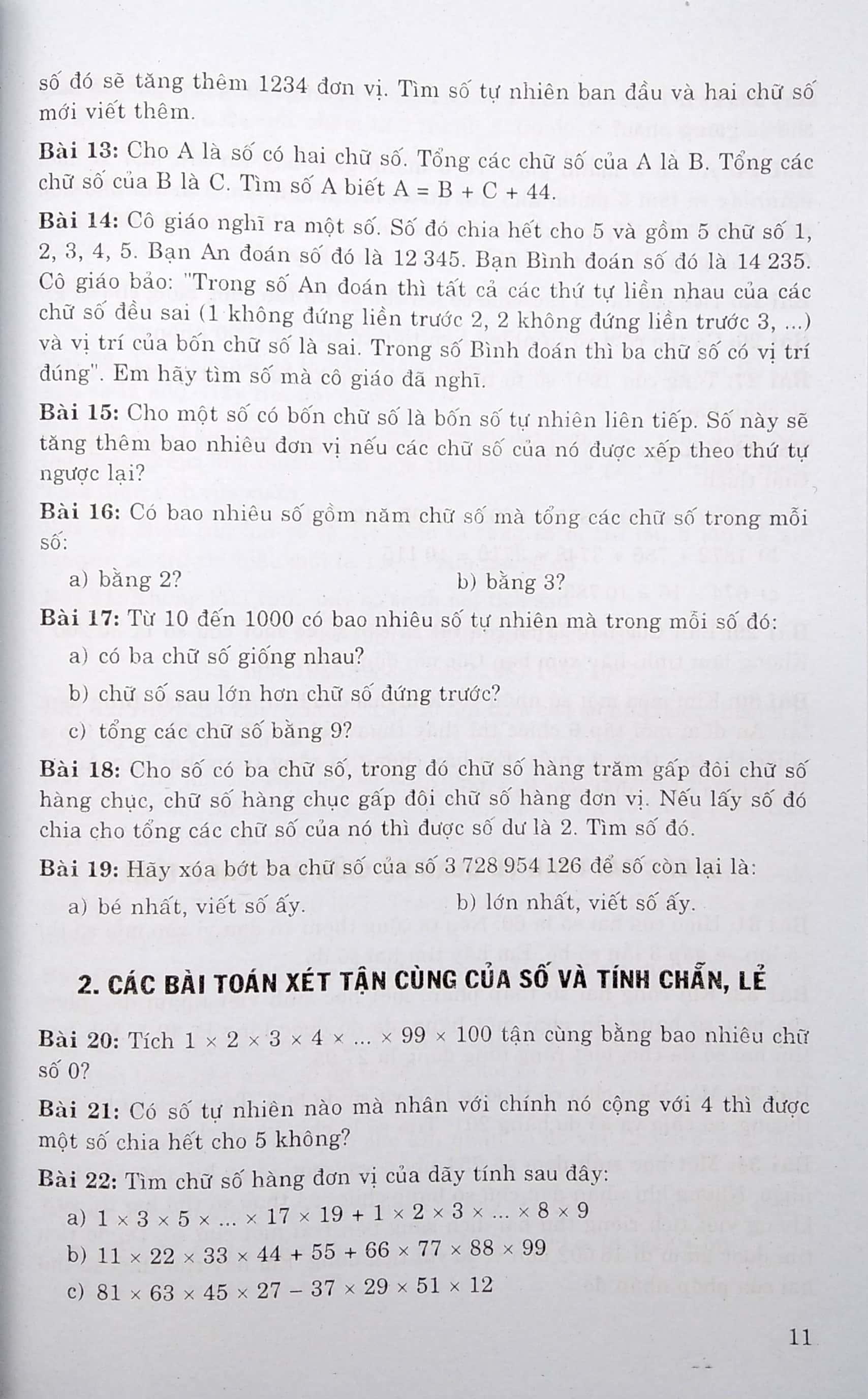 Sách này gồm 26 tiết đề cập đến 26 loại toán khác nhau. Đối với mỗi bài toán, bạn nên đọc thật kĩ đề, tìm hiểu cặn kẽ những đặc điểm của bài toán rồi tự mình suy nghĩ, cố hắng tìm ra lời giải, cố gắng tìm được nhiều cách giải và lựa chọn trong đó cách giải nào hay nhất. Sau đó mới tìm xem lời giải của bài toán mà sách đã nêu. Đa số các bài toán ở sách này đều là toán khó, trong đó có nhiều bài được rút ra từ các kì thi học sinh giỏi toán bậc tiểu học toàn quốc và các tỉnh, thành phố trong cả nước.