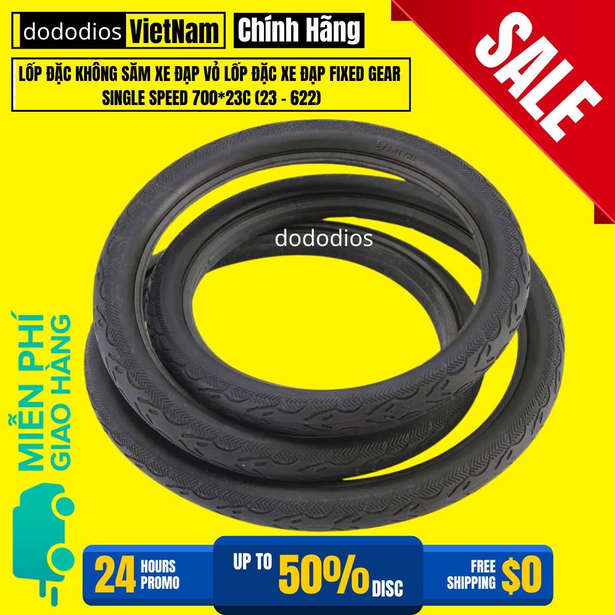 Lốp Đặc Không Săm Xe Đạp Chọn Màu – Vỏ Lốp Đặc Xe Đạp Fixed Gear Single Speed 700*23C (23 - 622) Chính Hãng dododios Lốp Đặc Không Săm Xe Đạp Chọn Màu – Vỏ