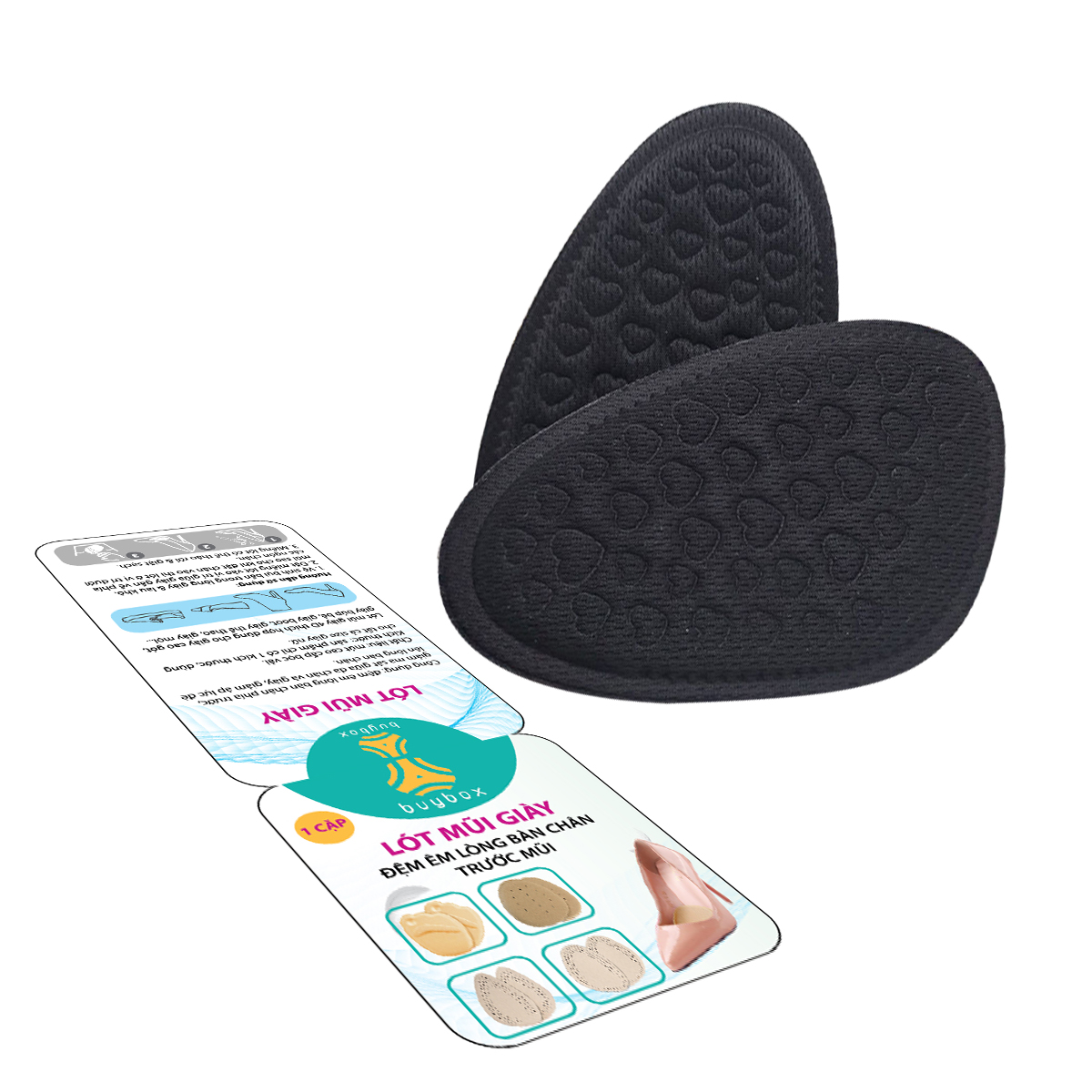 - Lót giày cao gót chống trượt bàn chân về phía mũi và đệm êm gang bàn chân - buybox - BBPK161 có thể tháo rời và giặt sạch để tái sử dụng nhiều lần Lưu ý: Sản phẩm mang thương hiệu buybox có bao bì in logo và hướng dẫn sử dụng chi tiết đi kèm. "buybox - NGƯỜI BẠN THÂN CỦA ĐÔI CHÂN"
