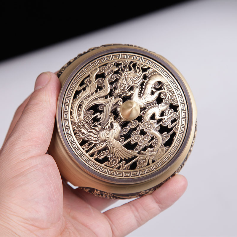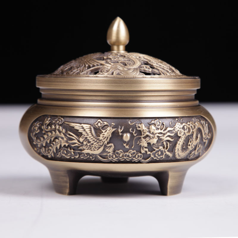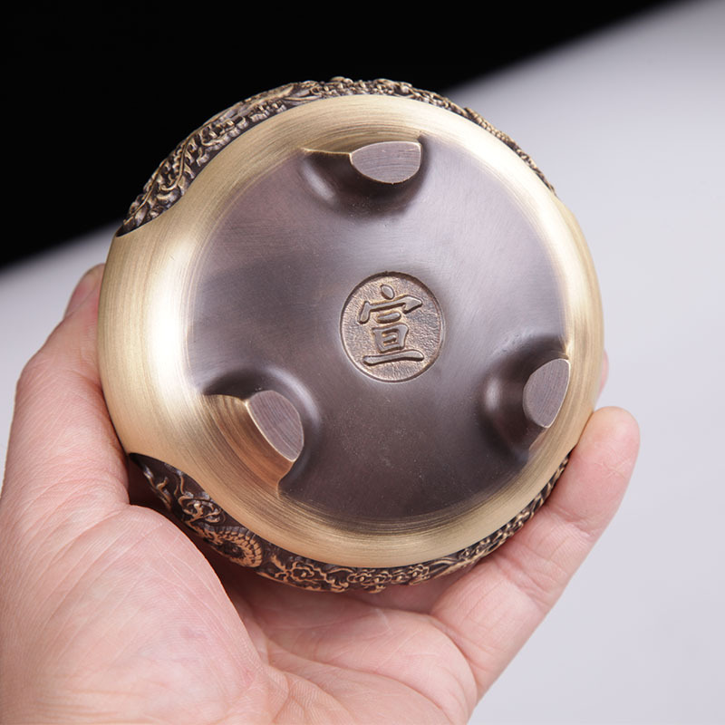 Lư Đồng Mini Đốt Trầm 3 Chân Chạm Khắc Rồng Phượng Đường Kính 4cm - Cao 3cm