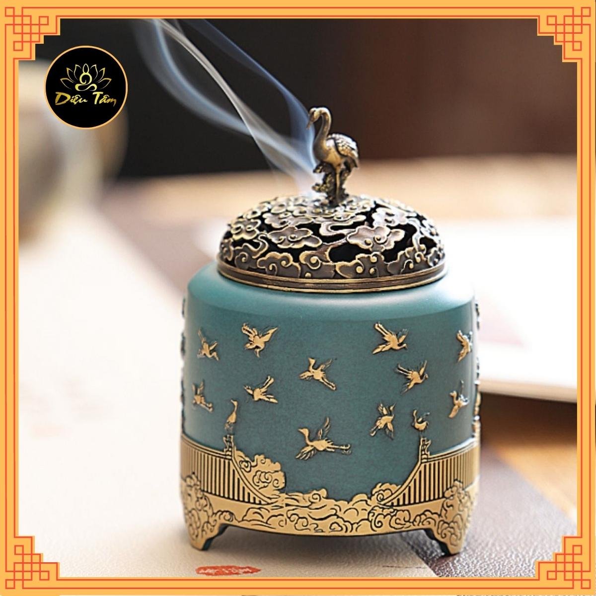 ✨Lư đồng xông trầm, lư xông trầm dùng để xông trầm hương thay cho thác khói trầm hộp quà tặng lư hạc xanh