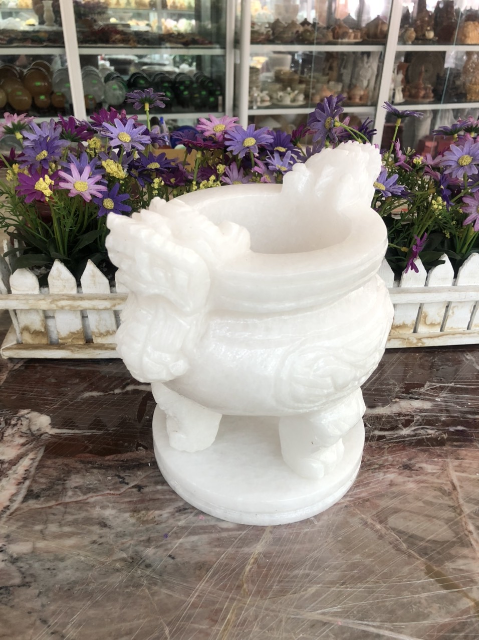 ✨Lư hương, bát hương, bát nhang chạm rồng trang trí bàn thờ, mộ đá cẩm thạch trắng - Cao 20 cm