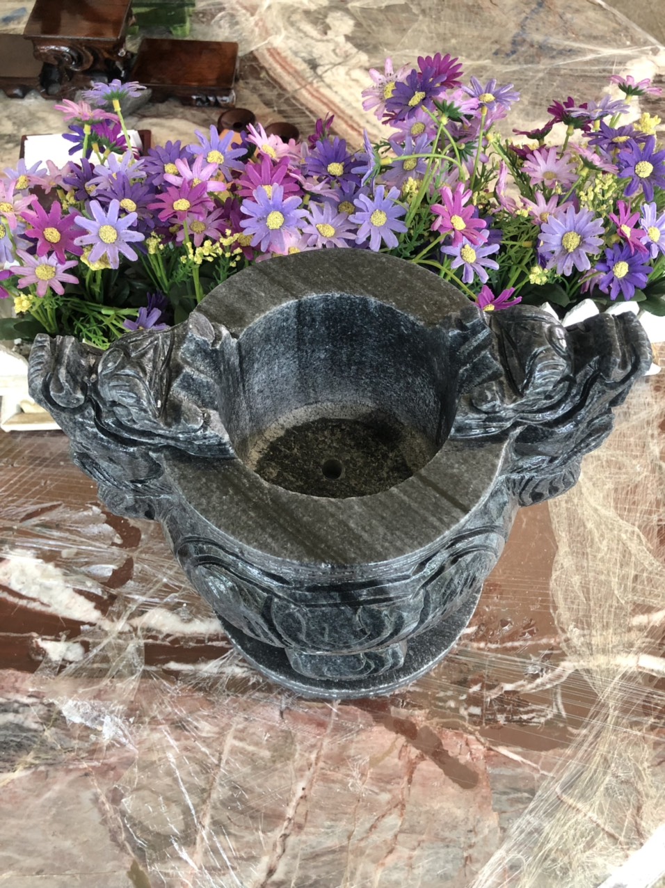 ✨Lư hương, bát hương, bát nhang chạm rồng trang trí bàn thờ, mộ đá cẩm thạch vân đen - Cao 25 cm