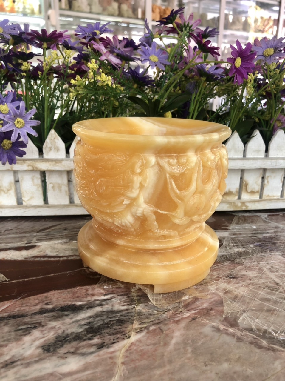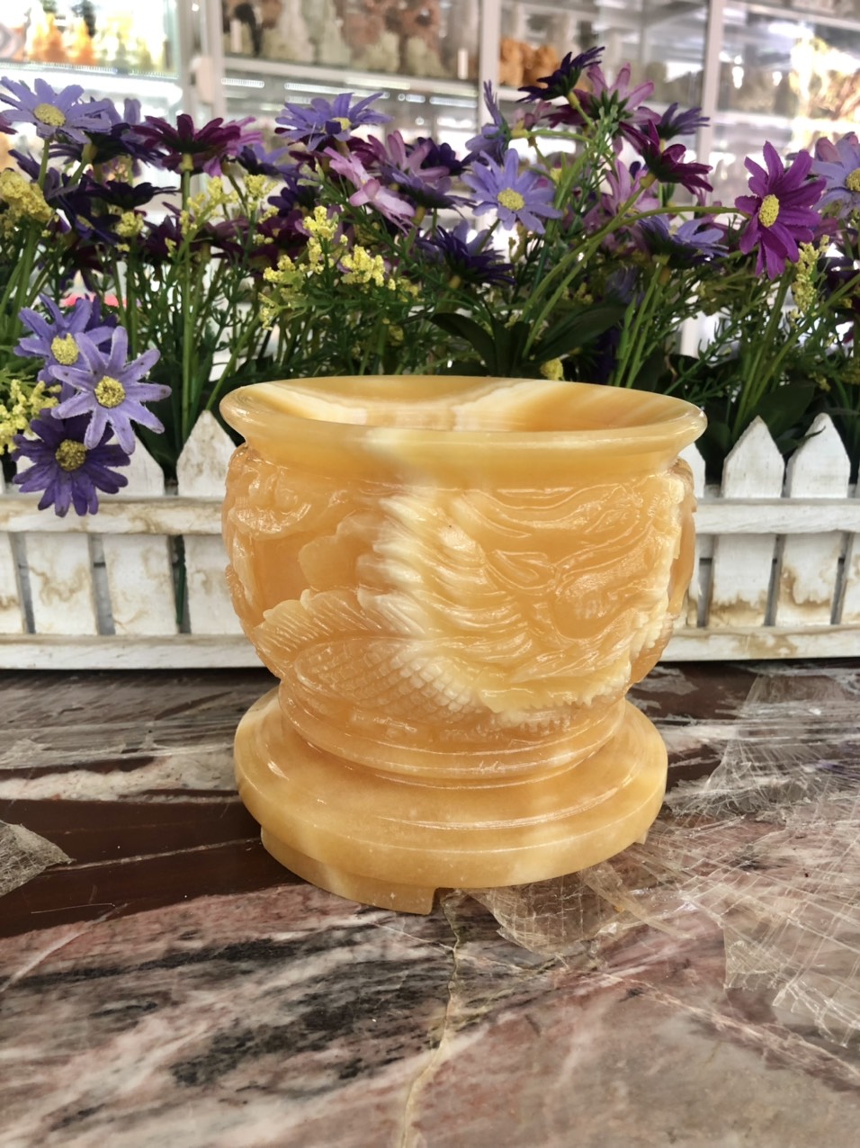 Kích thước: Cao 15cm; Đường kính 14cm Khối lượng: 3,5 kg Chất liệu: Đá ngọc hoàng long