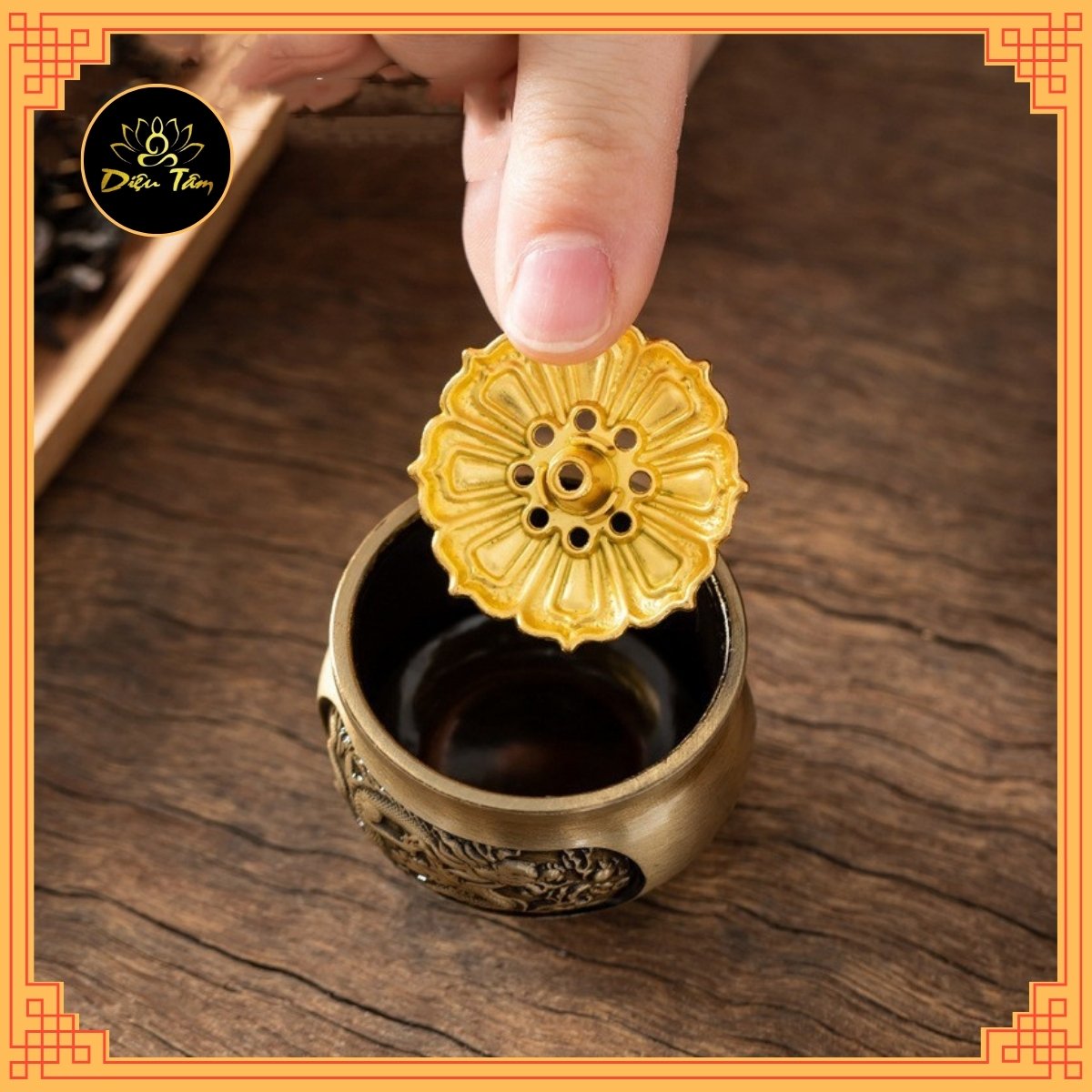 THÔNG TIN SẢN PHẨM Lư đồng lư xông trầm hương trầm nụ cao cấp thiết kế tinh xảo tặng kèm trụ và lót chống cháy shop Diệu Tâm -Chế tác: Thủ công -Chất liệu: Đồng