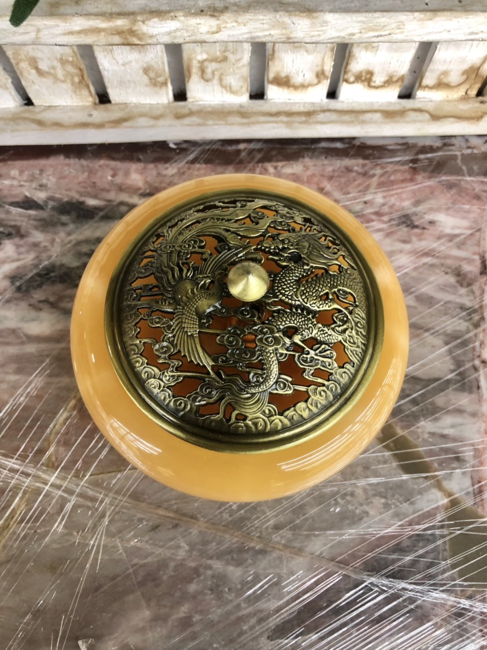 ✨Lư xông trầm hương, hủ đỉnh đốt nhang, trầm hương đá ngọc hoàng long size nhỏ - Cao 10 cm
