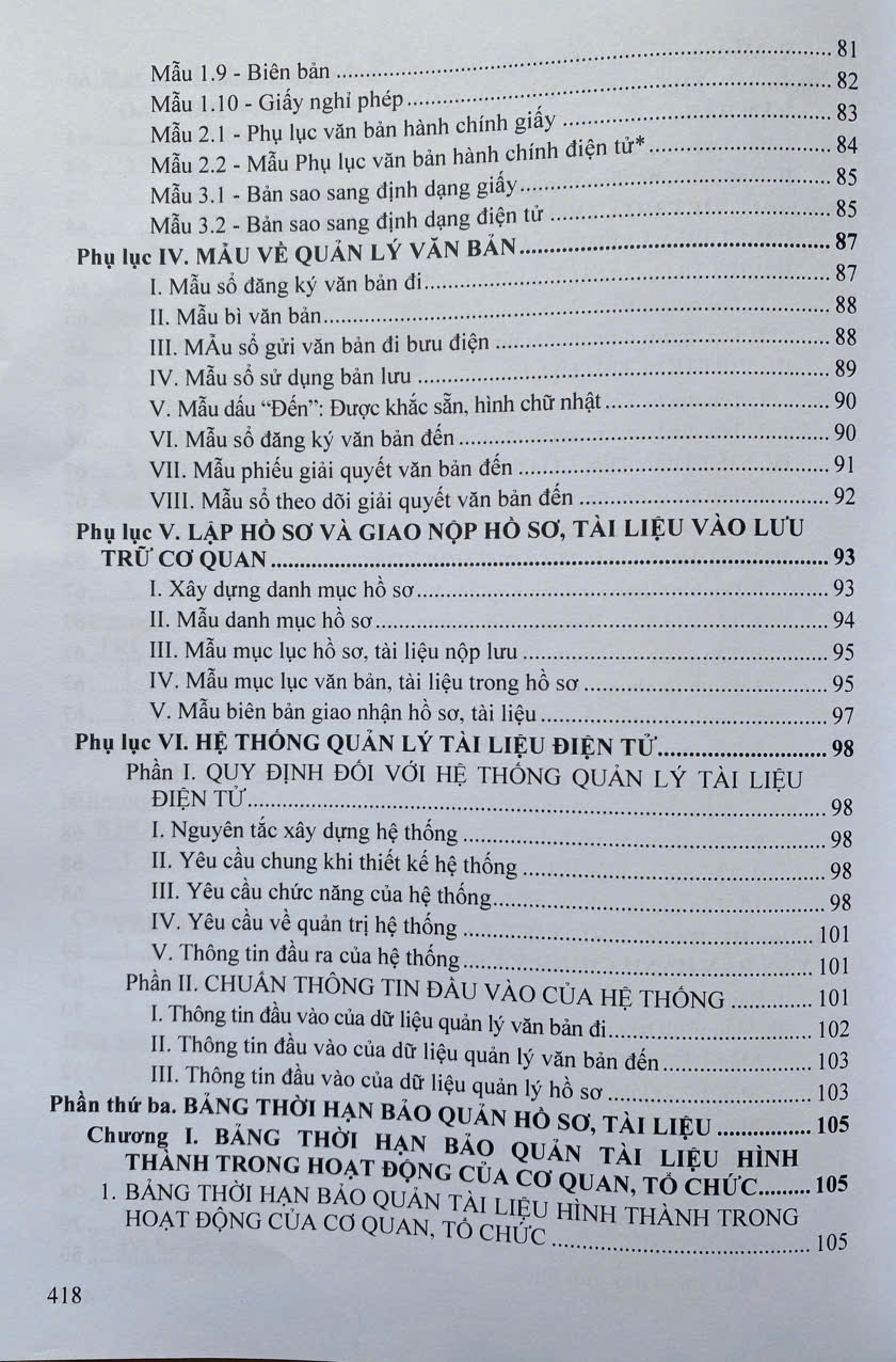 Ngày 21 tháng 6 năm 2024, tại kỳ họp thứ 7, Quốc hội khóa XV đã thông qua Luật Lưu trữ. Nhằm giúp việc quản lý và nâng cao nghiệp vụ của công tác văn thư, lưu trữ trong việc soạn thảo, ký ban hành văn bản; quản lý văn bản; lập hồ sơ và nộp lưu hồ sơ, tài liệu vào Lưu trữ cơ quan, hướng dẫn hoạt động thu thập, chỉnh lý, xác định giá trị, thời hạn bảo quản, thống kê, sử dụng tài liệu lưu trữ. Nội dung cuốn sách bao gồm những phần sau: -Phần thứ nhất. LUẬT LƯU TRỮ (được Quốc hội nước Cộng hòa xã hội chủ nghĩa Việt Nam khóa XV, kỳ họp thứ 7 thông qua ngày 21 tháng 6 năm 2024) -Phần thứ hai. NGHIỆP VỤ CÔNG TÁC VĂN THƯ -Phần thứ ba. BẢNG THỜI HẠN BẢO QUẢN HỒ SƠ, TÀI LIỆU Luatvietbook xin giới thiệu cuốn sách đến bạn đọc!