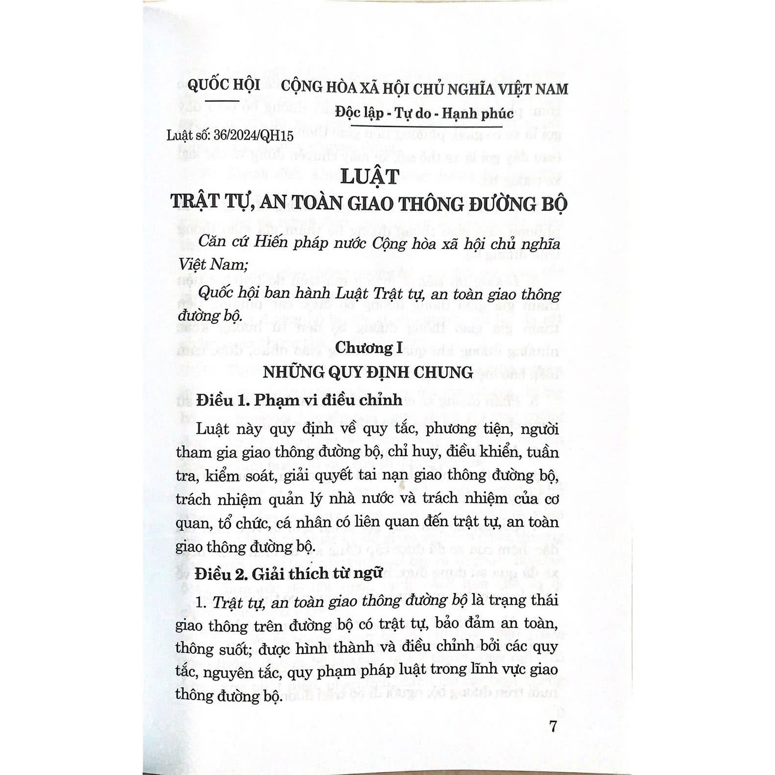 Luật Trật Tự, An Toàn Giao Thông Đường Bộ Năm 2024 - Tác giả: Quốc Hội - Ngày xuất bản: 2024 - Kích thước: 13 x 19 x 1 cm - Nhà xuất bản: NXB