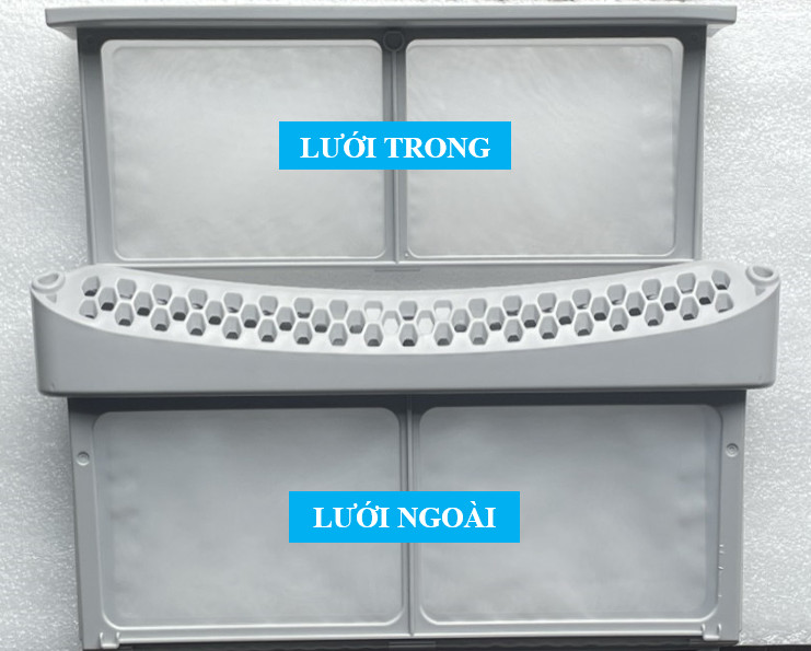 Lưới lọc bụi sử dụng thay thế máy sấy bơm nhiệt AQUA 10kg Hàng mới 100% - Hàng chính hãng Lưới lọc bụi máy sấy bơm nhiệt AQUA gồm 2 bộ phận: - Lưới lọc