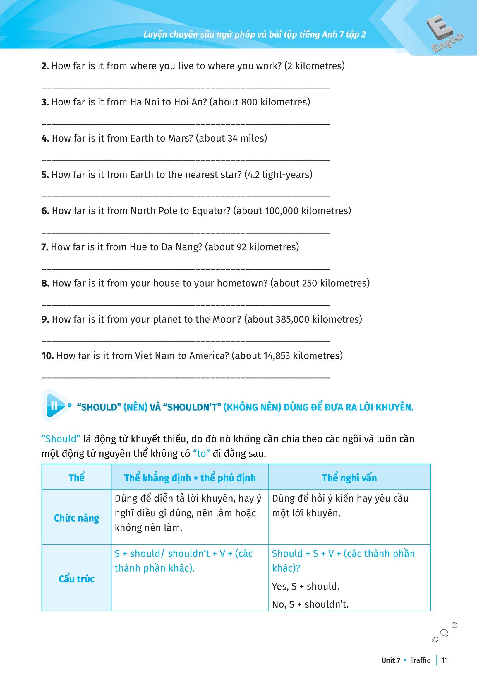 Luyện Chuyên Sâu Ngữ Pháp Và Bài Tập Tiếng Anh 7 Tập 2 phù hợp với tất cả các đối tượng học sinh có học lực từ trung bình đến khá, giỏi. Cuốn sách sẽ luôn là người bạn đồng hành giúp em chinh phục bài kiểm tra, bài thi Tiếng Anh 7.