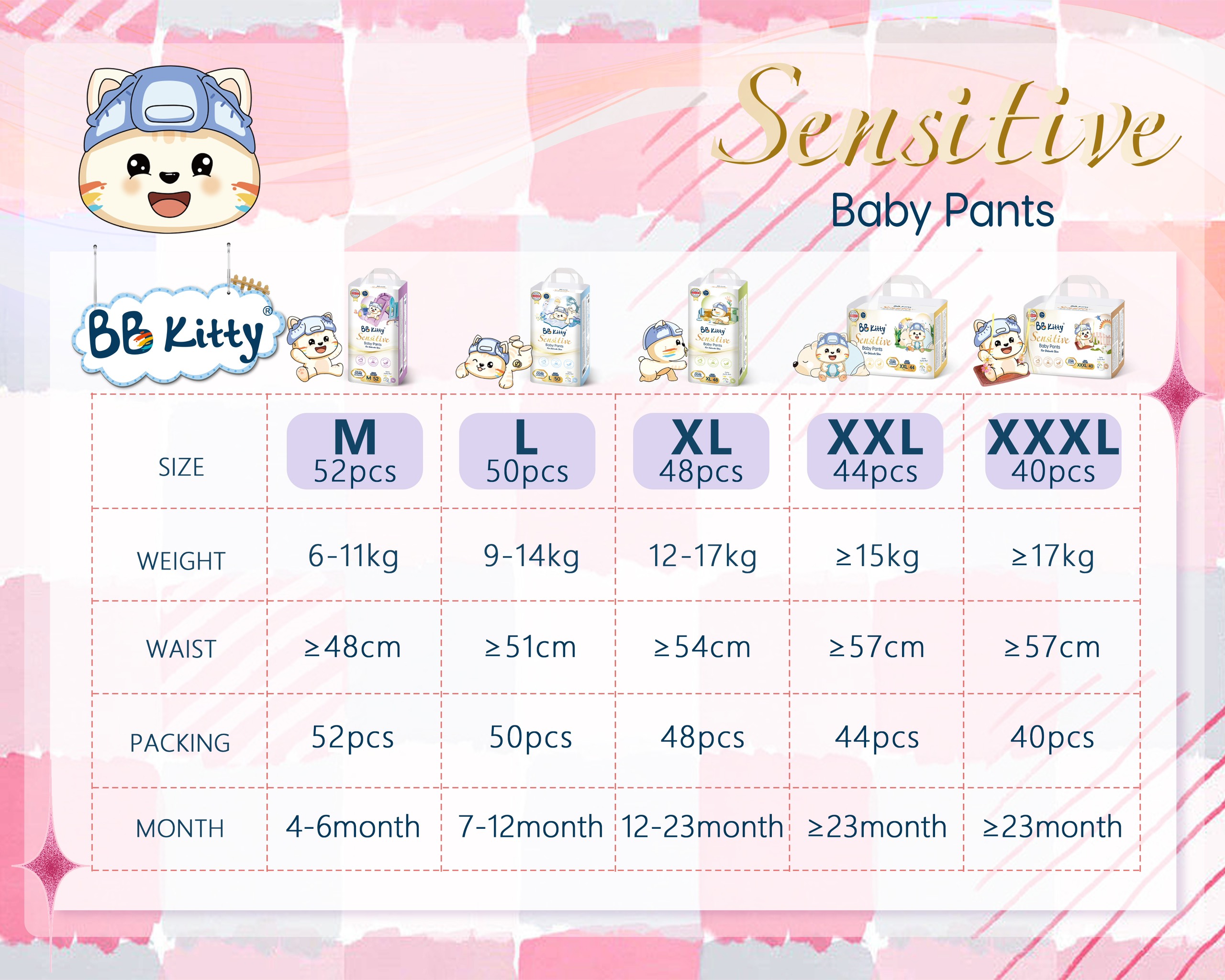 Bỉm Tã dán quần trẻ em BB KITTY SENSITIVE mẫu mới 2024 - Dịu nhẹ như làn da em bé. #bbkitty #goonbee