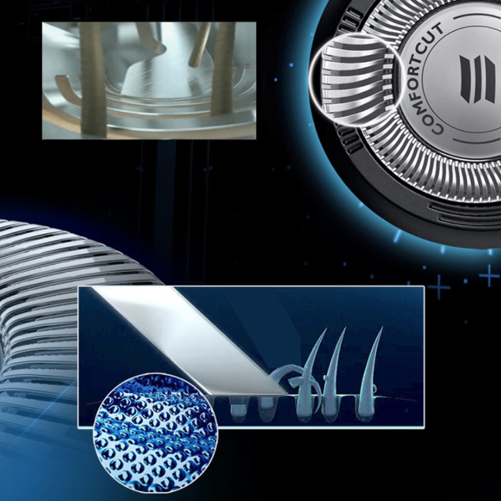 - Cạo râu thoải mái dù cạo khô hay ướt. Các lưỡi cạo ComfortCut của chúng tôi có các đầu cạo được thiết kế lượn tròn trượt êm ái trên da bạn mà không làm trầy xước da. Đầu cạo linh hoạt theo 5 hướng để cạo nhanh và sát