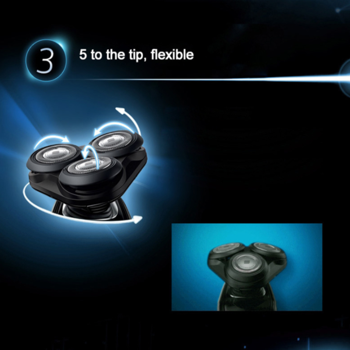 - Đầu cạo Flex linh hoạt theo 5 hướng có thể tự do di chuyển theo 5 hướng khác nhau, đảm bảo tiếp xúc sát với da giúp bạn cạo râu nhanh và sát kể cả ở vùng cổ và quai hàm. Cạo không dây 40 phút
