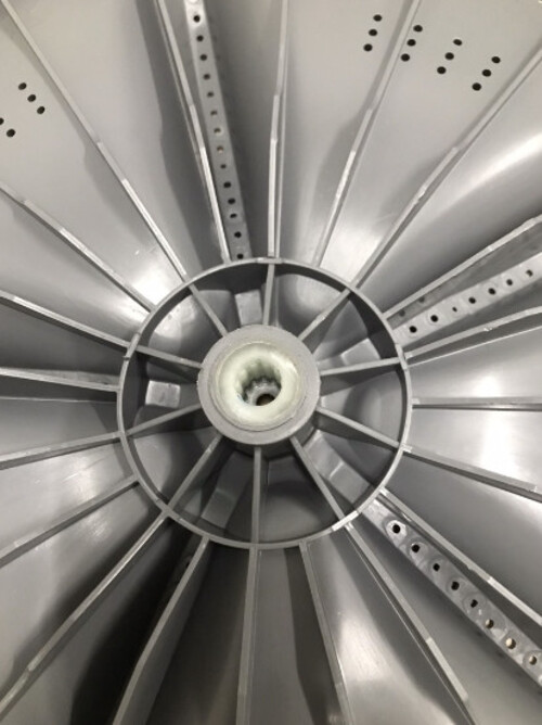 Đây là bộ phận nằm trong lồng giặt, truyền lực để lồng máy quay để thực hiện chu trình giặt.Máy giặt cửa trên, lồng đứng thường được nhà sản xuất thiết khế mâm giặt với