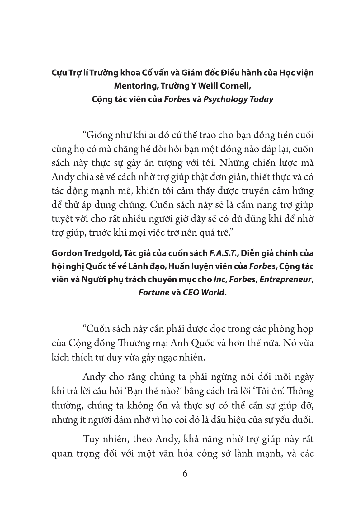 "Có quá nhiều thứ ngăn cản chúng ta nhờ trợ giúp. Điều mà chúng ta luôn không nhận ra là mọi người đều muốn giúp đỡ, họ thích giúp đỡ và họ sẽ cảm thấy tổn thương nếu chúng ta không để họ giúp đỡ m.ình."