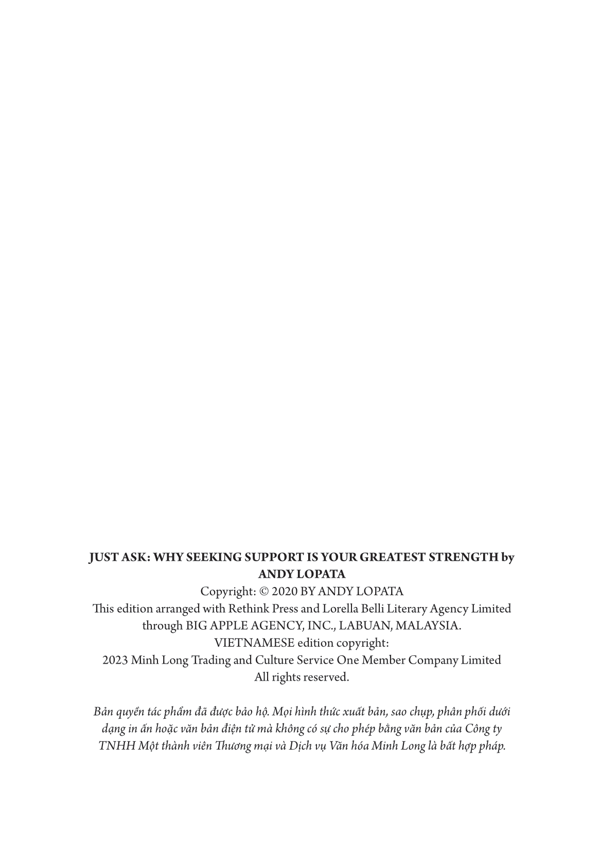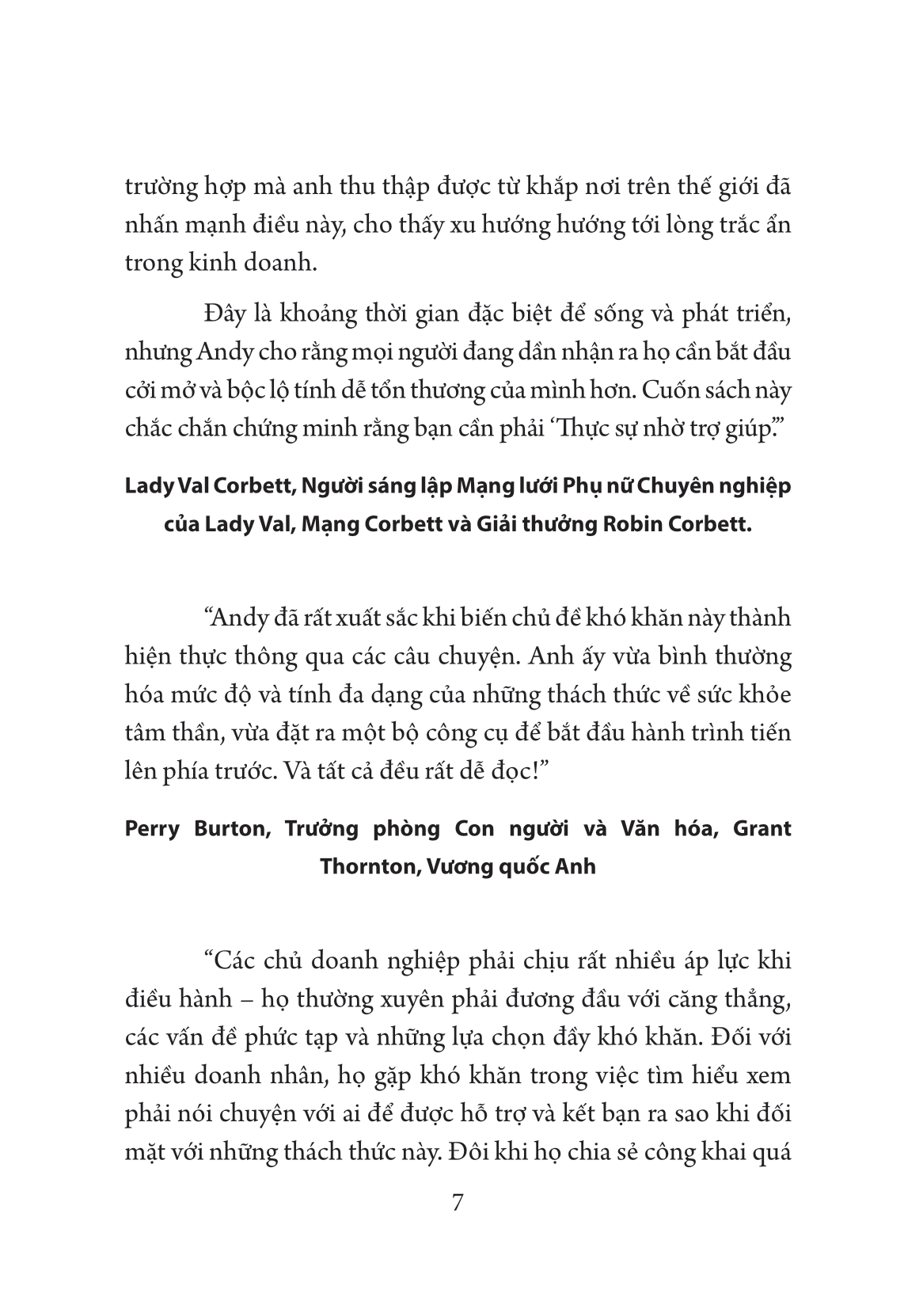 Trong cuốn sách này, tác giả Andy Lopata khám phá sự thay đổi cần thiết trong tư duy để ta có thể đón nhận sự hỗ trợ từ các mạng lưới của m.ình và sức mạnh của việc đó. Ông cũng thảo luận về tác động của tính minh bạch đối với thành tích của cá nhân và tập thể, đồng thời minh họa bằng các nghiên cứu điển hình dựa trên các cuộc phỏng vấn độc quyền về cách điều này ảnh hưởng đến mọi người thuộc tầng lớp xã hội.