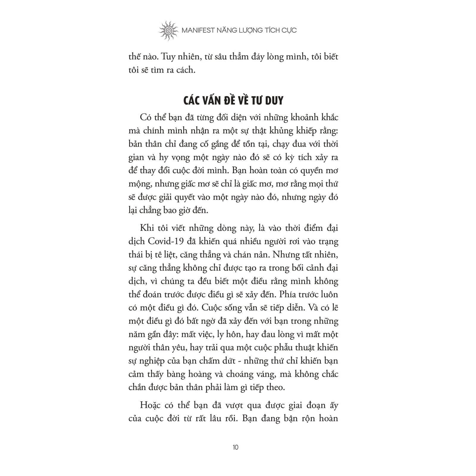 Cuộc sống tốt đẹp chưa chắc đã là cuộc sống đáng sống nếu thiếu đi cảm giác trọn vẹn, sự chủ động và niềm vui từ việc khai phóng tiềm năng. “Manifest Năng Lượng Tích Cực” chính là tấm bản đồ dẫn lối độc giả vượt qua sự trì trệ, nỗi sợ thất bại, sự nghi ngờ bản thân để bước vào trạng thái sống “vĩ đại” - nơi năng lượng tích cực không còn là khái niệm mơ hồ mà trở thành cách sống cụ thể.