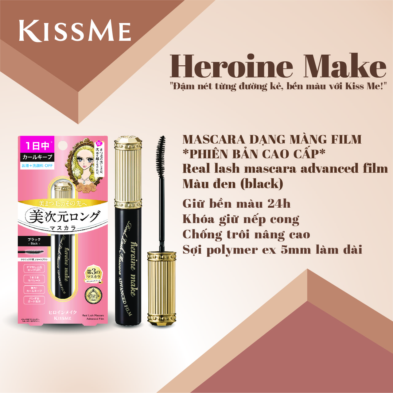 MASCARA DẠNG MÀNG FILM NÂNG CAO KISSME HEROINE MAKE SIÊU CHỐNG TRÔI GIÚP NÂNG CONG VÀ VUỐT DÀI MI (PHIÊN BẢN CAO CẤP) KISSME HEROINE MAKE REAL LASH MASCARA ADVANCED FILM Số Lô: In trên