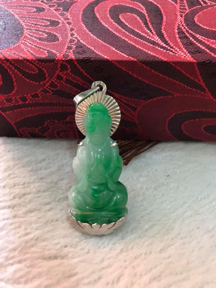 MẶT DÂY CHUYỀN NỮ PHẬT QUAN ÂM XANH NGỌC BỌC INOX