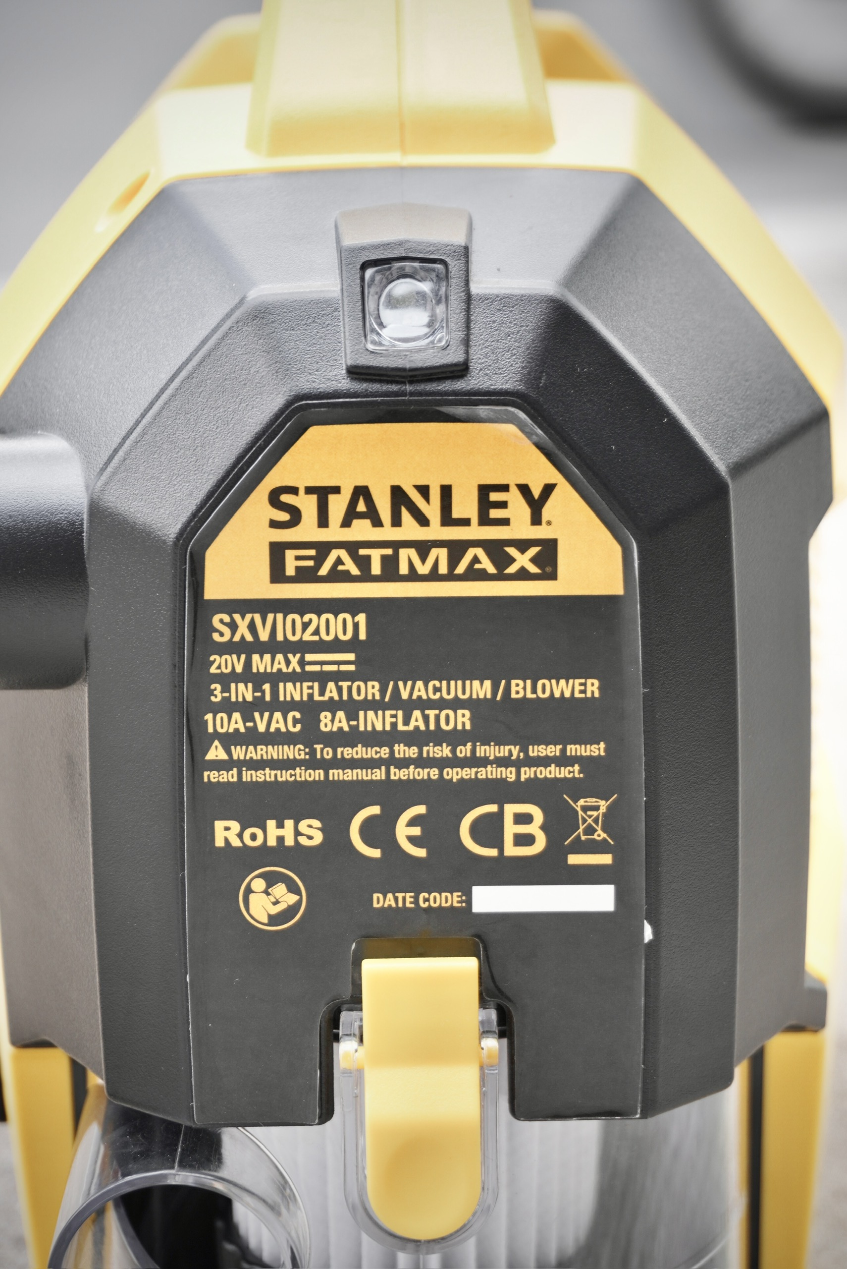Thông số kỹ thuật: Máy bơm hơi đa năng dùng pin kèm tính năng thổi và hút bụi hiệu STANLEY Model SXVI02001.