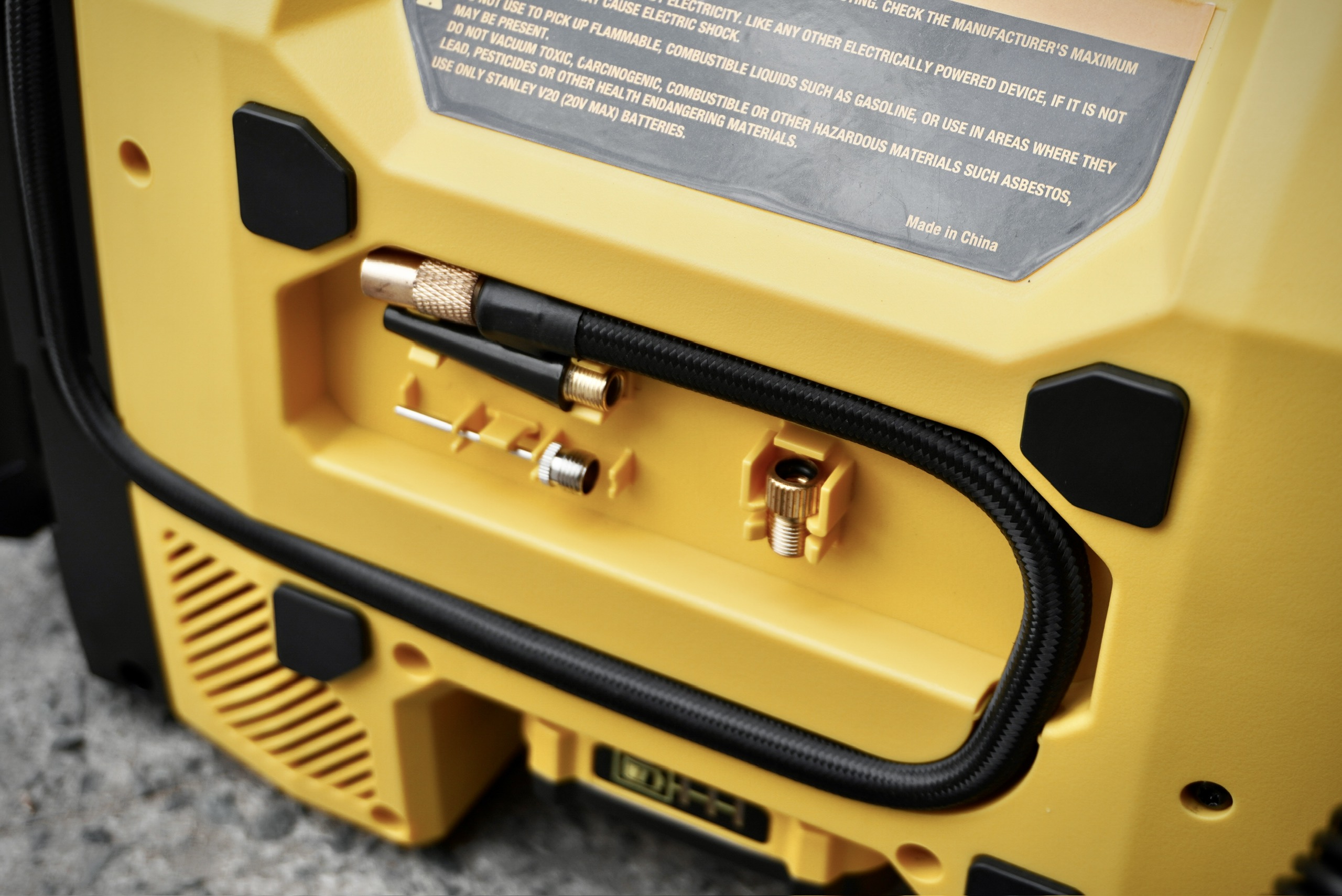 + Sử dụng linh hoạt: Dùng nguồn tẩu thuốc 12V DC trên ô tô hoặc pin Stanley V20 không dây (tuỳ phiên bản).