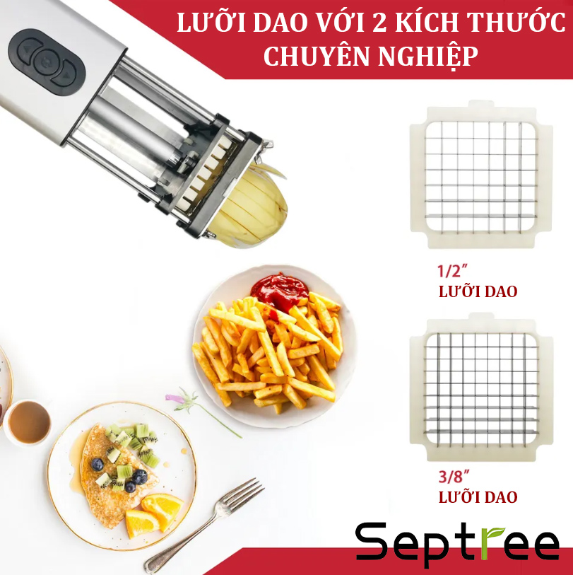 ✨Máy cắt khoai tây chiên, các loại củ và quả đa năng. Thương hiệu Mỹ Septree cao cấp - F300, Kiểu dáng Pháp [Hàng chính hãng, Bảo hành 12 Tháng]