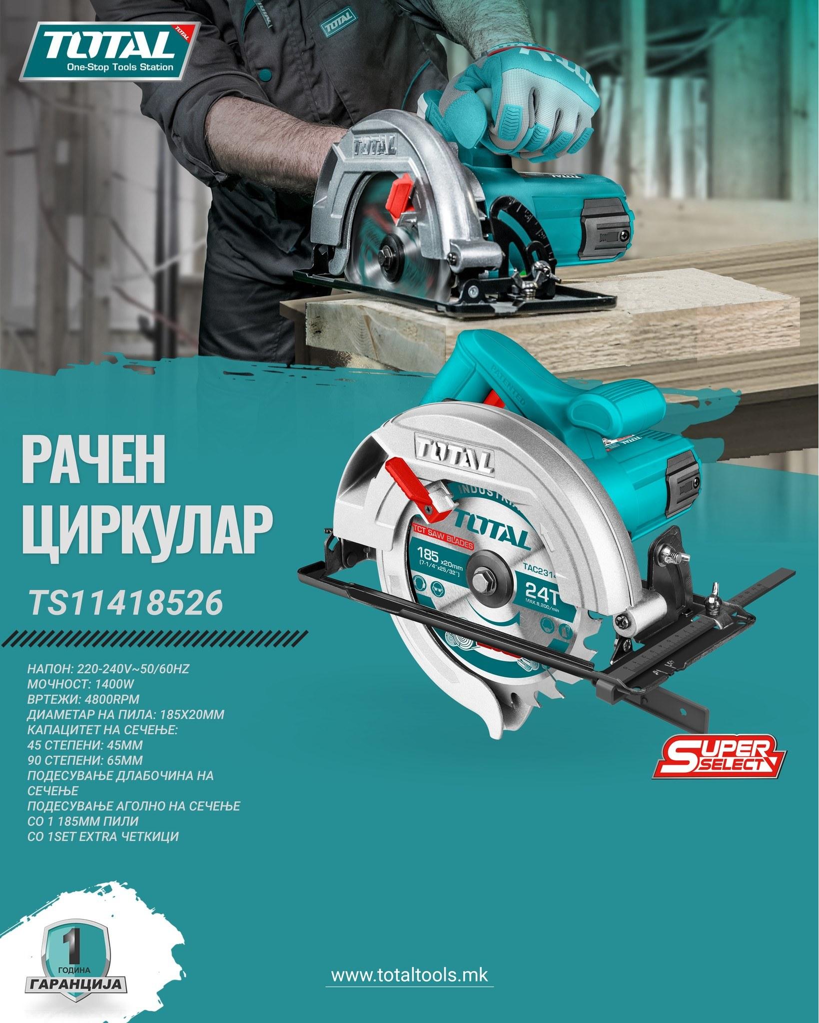 ✨MÁY CƯA ĐĨA TRÒN 1400W TOTAL TS11418526 - HÀNG CHÍNH HÃNG