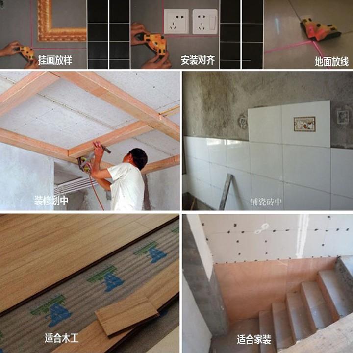 ️Dụng cụ ke góc vuông bằng tia Laze chiếu 2 tia laser vuông góc nhau, hiển thị rõ ràng có thể điều chỉnh góc đo từ 0 đến 90 độ trên sàn, tường, trần.