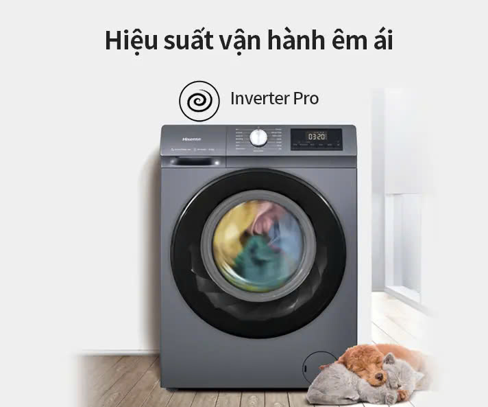 - Hiệu suất vận hành êm ái: Công nghệ Inverter Pro giúp máy giặt Hisense hoạt động êm ái, giảm rung lắc tối đa, kéo dài tuổi thọ và không làm ảnh hưởng giấc ngủ của bé.