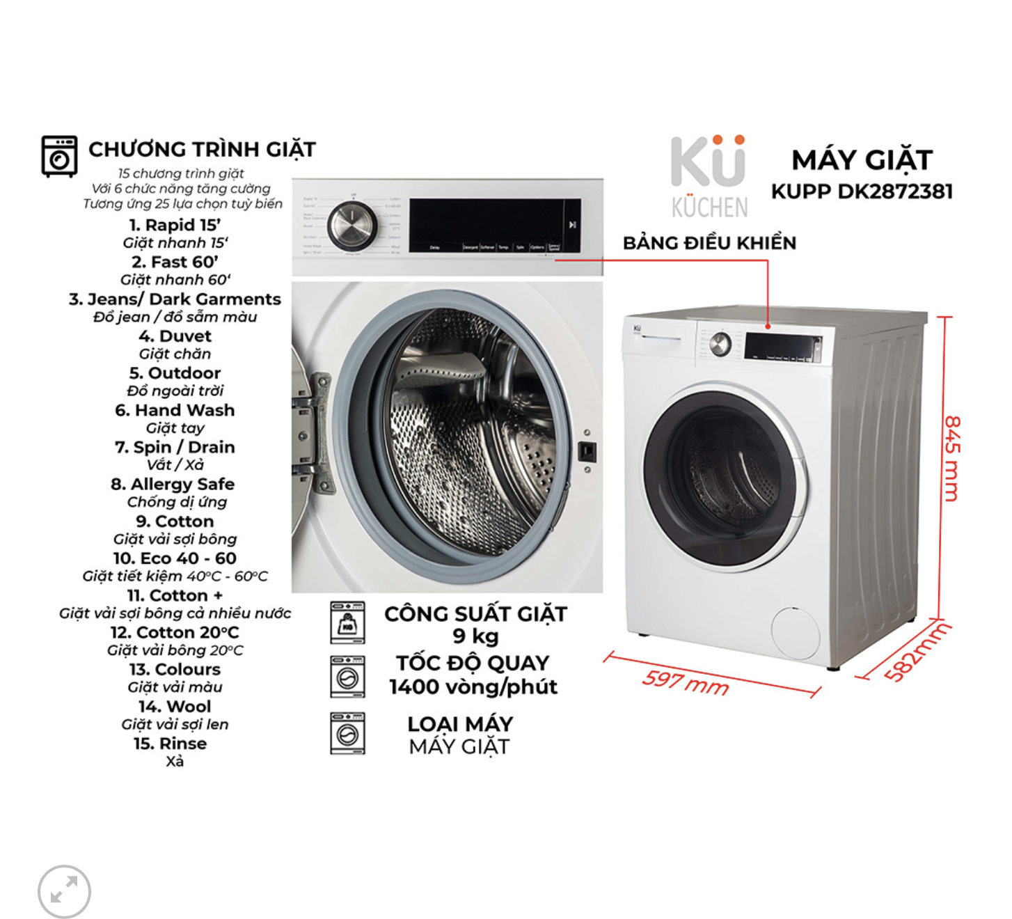 ✨MÁY GIẶT KUCHEN KUPP DK2872381- Hàng Chính Hãng