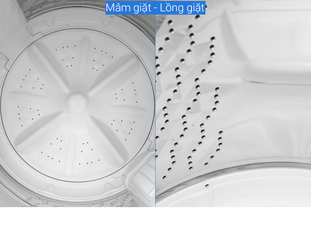 Đặc điểm nổi bật - Khối lượng giặt 9 kg thích hợp với gia đình từ 3 đến 5 thành viên.  - Công nghệ giặt Aroma lưu giữ hương thơm dài lâu cho quần áo.  - Mâm giặt kháng khuẩn ABT, có khả năng kháng khuẩn giúp bảo vệ sức khỏe gia đình.  - Lồng giặt Pillow dạng gối, dễ dàng giặt sạch quần áo, hạn chế xơ vải.  - Đa dạng chương trình hoạt động nên hỗ trợ việc giặt giũ trở nên dễ dàng hơn ​Tổng quan - Loại máy giặt:Cửa trên - Lồng giặt:Lồng đứng - Khối lượng giặt:9 Kg - Số người sử dụng:Từ 3 - 5 người - Kiểu động cơ:Truyền động gián tiếp (dây Curoa) - Tốc độ quay vắt tối đa:700 vòng/phút - Chất liệu lồng giặt:Thép không gỉ - Chất liệu vỏ máy:Kim loại sơn tĩnh điện - Chất liệu nắp máy:Kính cường lực - Sản xuất tại:Việt Nam - Năm ra mắt:2024 -