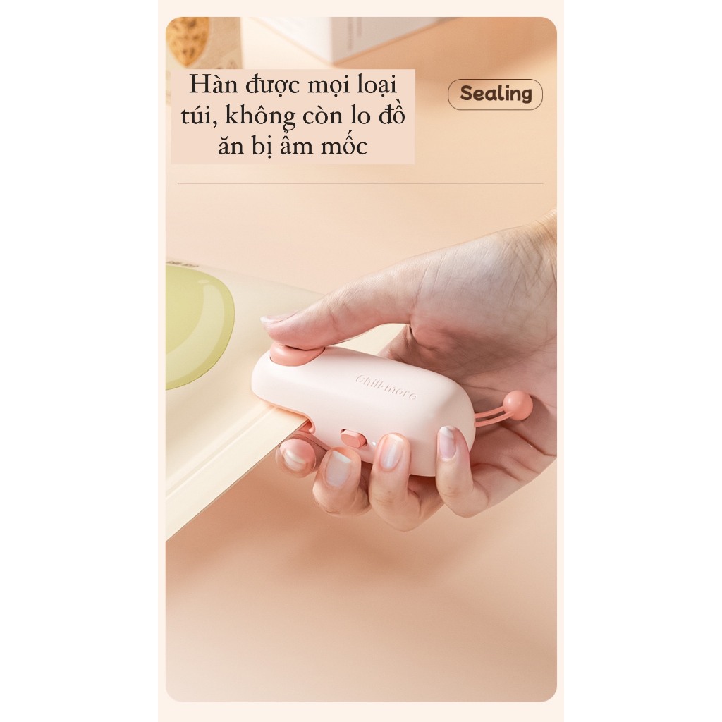✨Máy Hàn Miệng Túi Cầm Tay Cute, Máy Ép Miệng Túi Đồ Ăn Vặt Sạc Pin Tích Hợp Nam Châm Kèm Đầu Cắt Tiện Dụng - Hàng Chính Hãng MINIIN