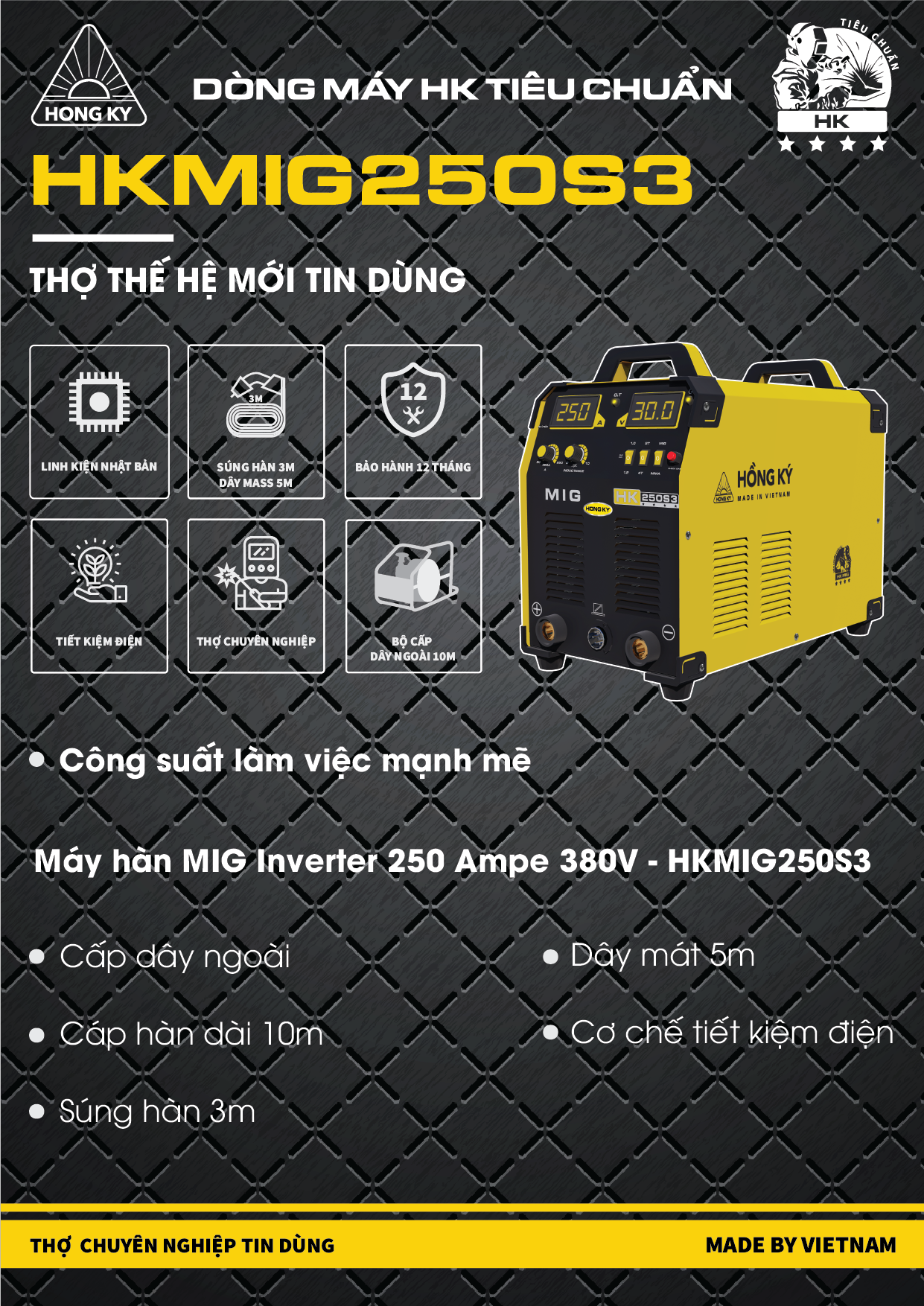 ✨Máy hàn MIG Hồng Ký Master 250 Ampe 380V - HKMIG250S-3