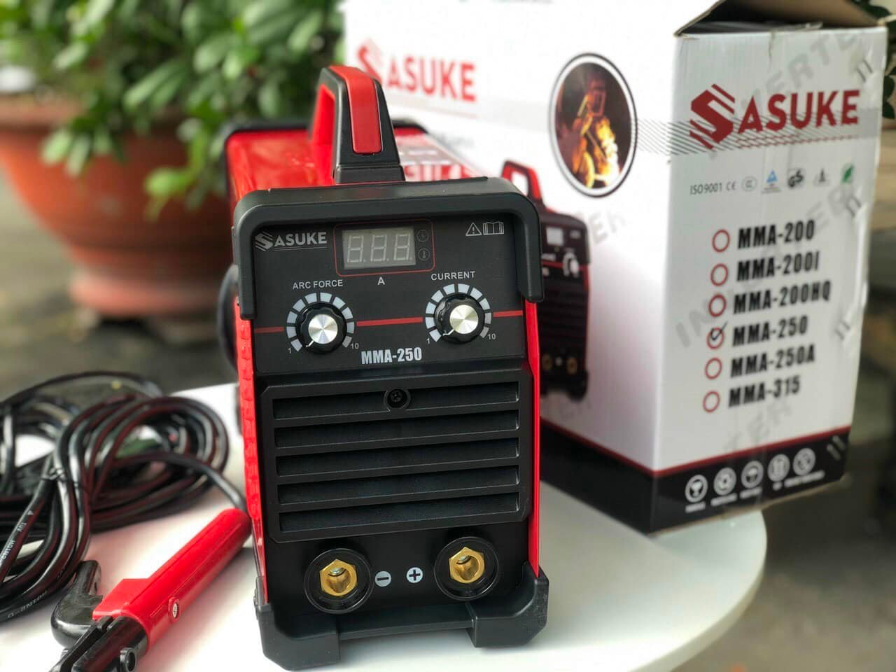Máy hàn Sasuke Mig 250A sử dụng que hàn đường kính 1.6mm - 4.0mm Máy hàn mig Sasuke 250A là dòng máy hàn điện tử nhỏ gọn với trọng lượng chỉ 11.6kg giúp xách tay di chuyển khi