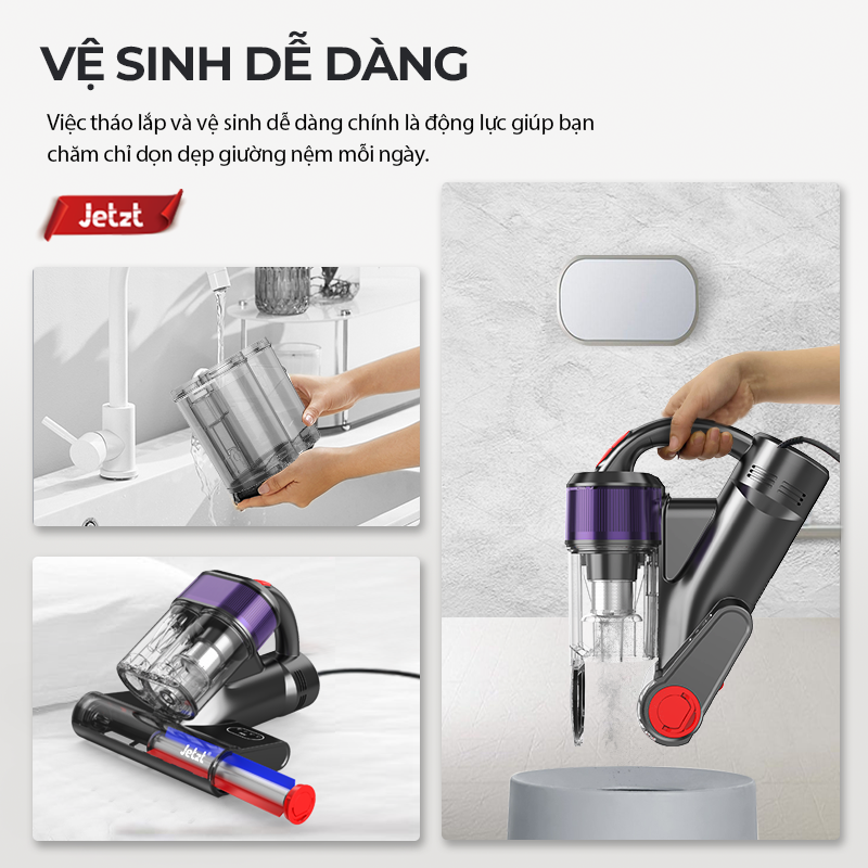 Để đảm bảo sức khỏe an toàn cho mọi thành viên trong gia đình bạn chắc chắn không thể bỏ qua sản phẩm MÁY HÚT BỤI GIƯỜNG NỆM JETZT J17 với 7 tầng lọc bụi, mang lại khả năng tiêu diệt bụi bẩn, vi khuẩn bám trên giường đệm sạch tới 99%. Với công nghệ diệt khuẩn bằng tia UV, những vết bẩn, vi khuẩn bám lâu ngày sẽ biến mất một cách dễ dàng khi sử dụng JETZT J17.