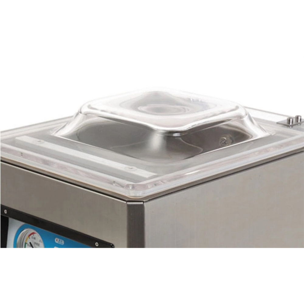 - Vỏ ngoài của máy được làm bằng thép không gỉ. Các thông số kỹ thuật cần thiết cho việc đóng gói sản phẩm có thể được lập trình trước. Khi nhấn nắp buồng hút chân không, toàn bộ quá trình đóng gói chân không được hoàn thành theo chương trình tự động. Nắp máy được làm bằng tấm mica trong suốt hoàn toàn giúp quan sát dễ dàng về quy trình đóng gói hút chân không.