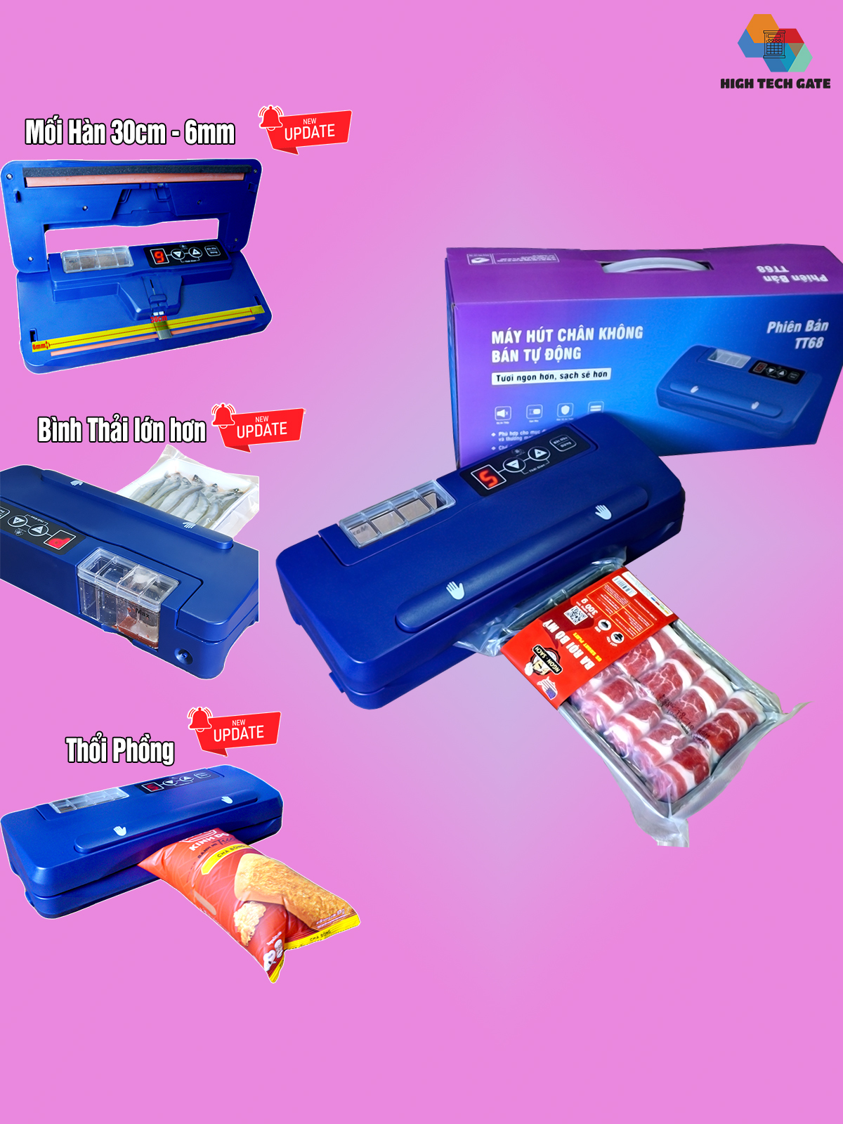 Phiên bản TT68 được trang bị thêm chức năng thổi phồng túi, giúp người dùng có thể bảo quản các đồ thực phẩm dễ nát, giòn như khoai tây chiên, bắp rang bơ, oishi, bánh mì, một cách tiện lợi ngay tại nhà.