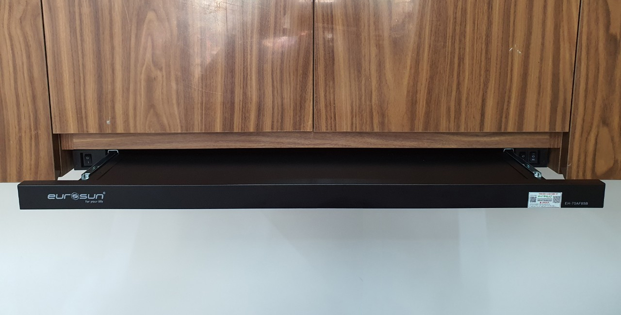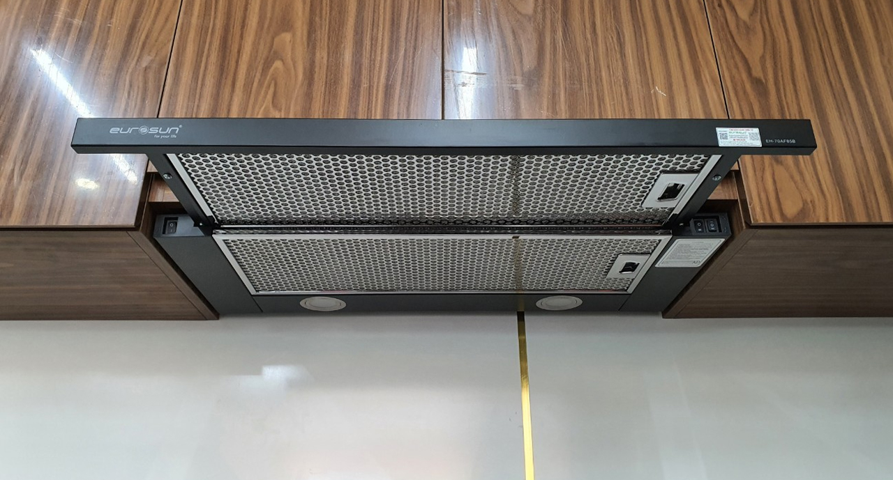 - Hút mùi Eurosun EH-70AF85B là dòng hút mùi gắn tường kiểu dáng lắp âm tủ thu gọn.