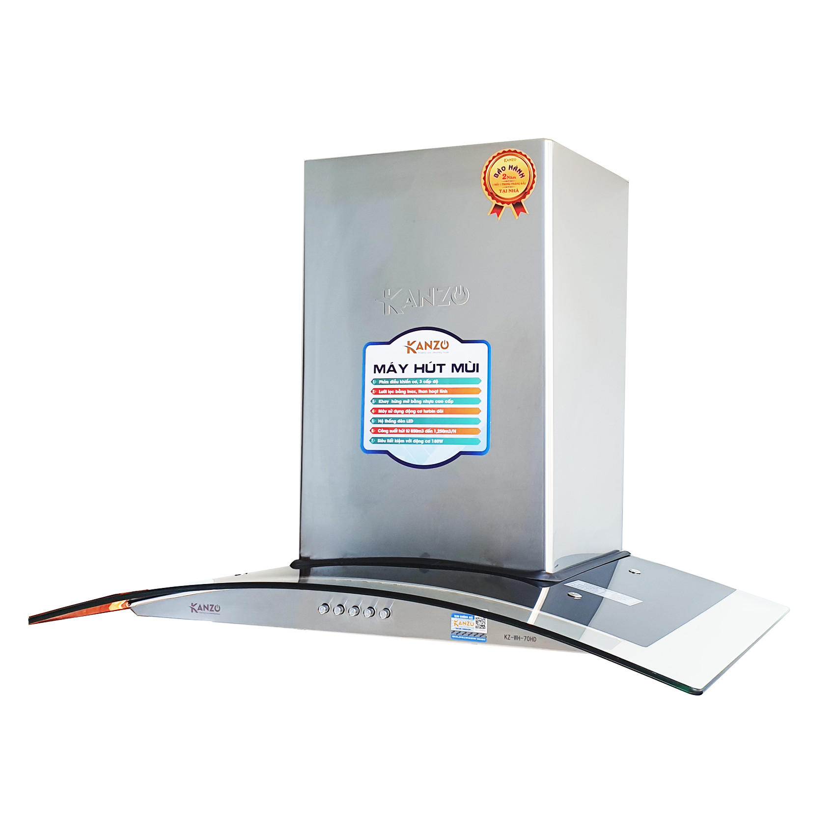 Máy hút mùi kính cong 700MM KZ-WH-70HD hút mùi hiệu quả – tiết kiệm điện năng Motor siêu bền 3 tốc độ, công suất mạnh mẽ Máy hút mùi khói cao cấp 700MM KZ-WH-70HD có công suất lớn tới 1250m³ /h, 3 tốc độ hút cho hiệu quả hút mùi tốt ưu lại tiết kiệm điện năng.