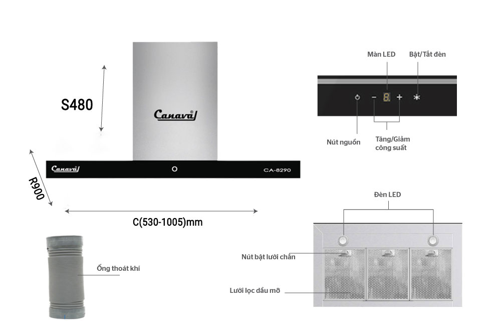 Hút Mùi Canaval CA-8290/Thiết Bị Nhà Bếp Minh Tâm