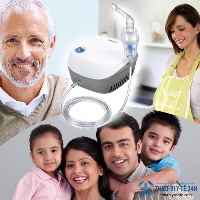 - Máy Xông Họng, Khí Dung Beurer IH18 đưa thuốc trực tiếp vào cơ thể dưới dạng hạt sương mù làm thông và loãng đờm, thấm sâu các lượng thuốc, muối sạch vào nang phế