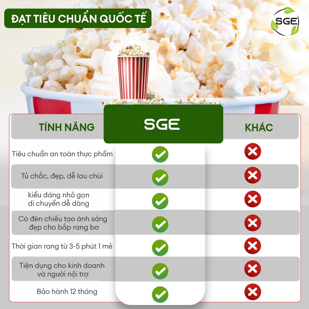 - Máy làm bắp rang bơ gia đình Máy làm bắp rang bơ gia đình chỉ sử dụng bếp gas mini gồm: 01 bếp ga, 01 nồi inox loại dày có vung bằng thuỷ tinh, trong nồi có gắn 3 cánh để đảo đều bắp, bơ, đường. Thiết bị này được quay bởi 1 động cơ nằm dưới đáy bếp gas, sử dụng điện áp 12V. Để sử dụng trang bị thêm 1 ắc quy thì tiện dùng cho những người bán hàng di chuyển ở nơi không có nguồn điện hoặc Adapter khi bạn ở nhà cố định, nơi có nguồn điện. Bếp gas mini này là loại vừa dùng được cả bình gas du lịch vừa dùng được và bình gas to nên rất thuận tiện cho mọi trường hợp. TÁC DỤNG CỦA MÁY LÀM BẮP RANG BƠ Máy làm bắp rang bơ không những nổ được bỏng ngô mà còn có thể rang, sấy các loại hạt như: lạc, đậu nành, bí, hướng dương…Máy thực sự mang lại sự tiện dụng cho kinh doanh và người nội trợ. Thay vì phải dùng nồi bằng gas tốn thời gian và công sức thì hiện nay, máy được sử dụng phổ biến để tiết kiệm mọi yếu tố như kinh tế, nguồn lực. Máy nổ bỏng ngô mang đến lợi ích kinh tế cao, tiết kiệm thời gian cho người sử dụng. Chỉ với 3-5 phút, cộng thêm một vài thao tác đơn giản như cho nguyên liệu vào máy đậy nắp ấn nút sau đó nhấn công tắc là người dùng đã có ngay sản phẩm như ý. Bạn chỉ cần nâng cần gạt và đổ bỏng ngô khay ra dễ dàng. Ngoài ra, máy hoạt động ở nhiệt độ cao nên bắp và bơ (hoặc các loại vị khác) sẽ dễ hoà quyện với nhau, mang lại hương vị đậm đà cho móng ăn. Việc này sẽ trở nên khó khăn khi bạn phải thực hiện bằng tay thông qua quá trình đảo thủ công. Như vậy, gia vị khó có thể thấm đều trên từng hạt bắp rang. Chỉ thực hiện bằng máy, quá trình này mới diễn ra thuận lợi mà không phải tốn nhiều công sức. Thêm nữa, chúng ta cần xem xét đến những tính năng nổi bật của loại máy rang bắp hiện nay. Phần cuối của bài viết sẽ thông tin thêm về yếu tố này. ĐẶC ĐIỂM NỔI BẬT CỦA MÁY LÀM BẮP RANG BƠ (MÁY NỔ BỎNG NGÔ) Nhắc đến máy làm bỏng thì không thể bỏ qua một số tính năng nổi bật. Máy làm bắp rang bơ có kích thước nhỏ gọn, tiện lợi Máy có thiết kế nhỏ gọn Kiểu dàng máy khá nhỏ gọn, di chuyển dễ dàng. Chất liệu cấu thành nên cả máy và bốn mặt kính bằng nhựa mica cao cấp dễ dàng quan sát toàn bộ quá trình làm bắp, dễ vệ sinh. Dễ sử dụng Đây là dòng máy sử dụng dòng điện gia đình thông dụng. Khi sử dụng, bạn sẽ không phải lo lắng về nguồn điện của máy. Máy này cũng dùng giắc cắm điện 2 cạnh nên rất tiện lợi ở bất kỳ ổ điện nào. Công suất lớn Công suất máy lớn giúp làm nóng nhanh, do đó chỉ chưa đến 5 phút là đã có một mẻ bắp rang bơ thơm ngon. Mặc dù vậy, máy vẫn chỉ tiêu tốn rất ít điện năng, giúp tiết kiệm một lượng lớn điện tiêu thụ tại cơ sở sản xuất kinh doanh. Máy làm bắp rang bơ thực sự đã mang lại nhiều lợi ích không chỉ là kinh tế mà còn là hiệu quả về nhiều mặt khác. Nếu có ý định kinh doanh về các loại bỏng ngô thì bạn nên tham khảo về loại máy này. Mong rằng bài viết của chúng tôi sẽ mang lại những thông tin hữu ích cho bạn đọc.