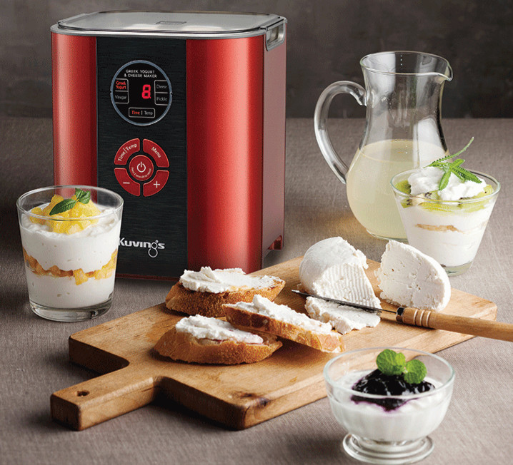 Máy làm sữa chua và pho mát hiệu Kuvings KGC-712CB với công nghệ khử hơi nước bằng nhiệt tuần hoàn quay tự động khi ủ dễ dàng tách váng sữa ra khỏi chất lỏng khi làm sữa chua, pho mát và một số loại giấm cho ra các món tráng miệng nguyên chất rất đặc biệt