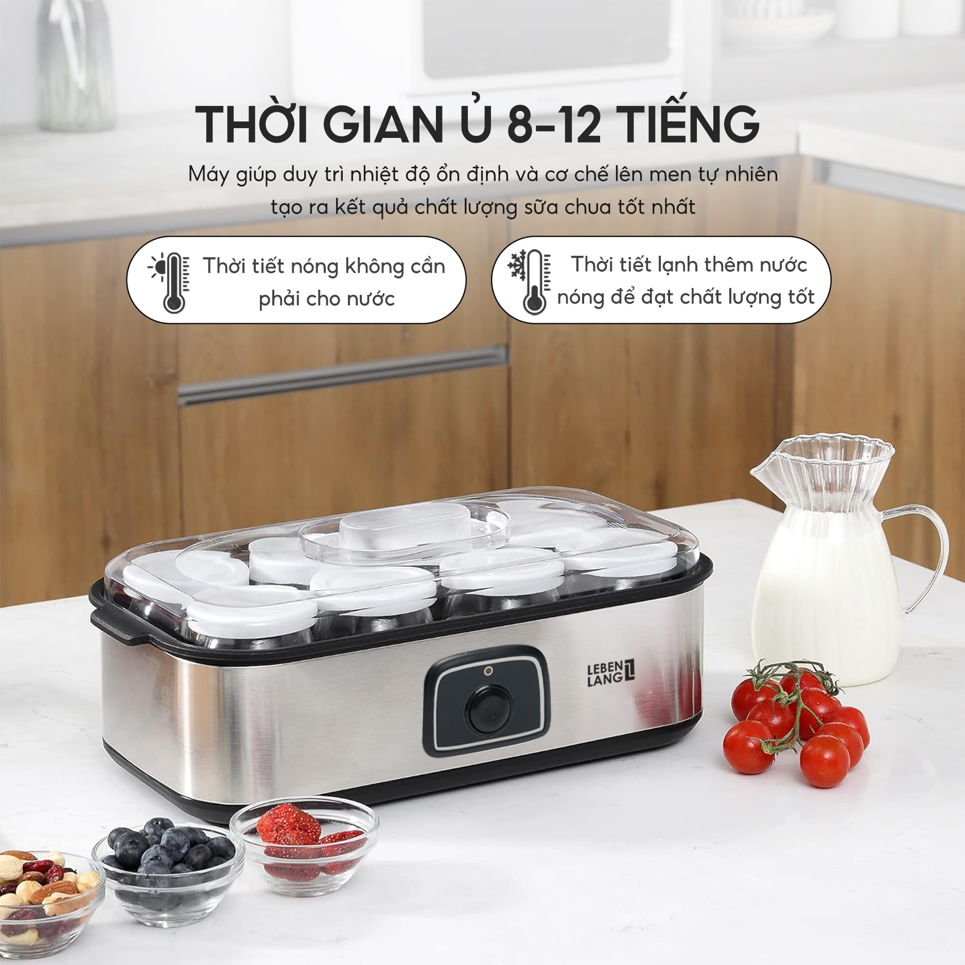 Máy làm sữa chua Lebenlang LBL9139, công suất 20W, dung tích 180ml, gồm 8 lọ thủy tinh, bảo hành 2 năm - hàng chính hãng 6 LÝ DO NÊN CHỌN MÁY LÀM SỮA CHUA CỦA LEBENLANG