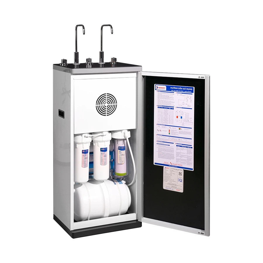 Tổng quan - Kiểu lắp đặt:Tủ đứng - Loại máy:Máy lọc nước RO nóng nguội lạnh - Công nghệ lọc:Thẩm thấu ngược RO - Kháng khuẩn:Nano Silver - Dung tích bình chứa:Tổng 7.8 lít (Nước nóng 0.8 lít, nước lạnh 1 lít, nước thường 6 lít) - Tỷ lệ lọc - thải:Lọc 4.8 - Thải 5.2 (Tỷ lệ này phụ thuộc vào chất lượng nước đầu vào) - Công suất lọc:18 lít/giờ - Công suất tiêu thụ điện trung bình khoảng:0.628 kW/h - Nhiệt độ nước hãng công bố:Nóng 80 - 90°C, Lạnh 10°C - Nhiệt độ nước thực tế:Nóng 80 - 90°C, Lạnh 10°C - Áp lực nước yêu cầu:0.07 - 0.25 MPa - Nơi sản xuất máy bơm:Trung Quốc - Năm ra mắt:2023 - Thương hiệu:Việt Nam - Nơi sản xuất:Việt Nam Thông tin lõi lọc - Số lõi lọc:10 lõi -