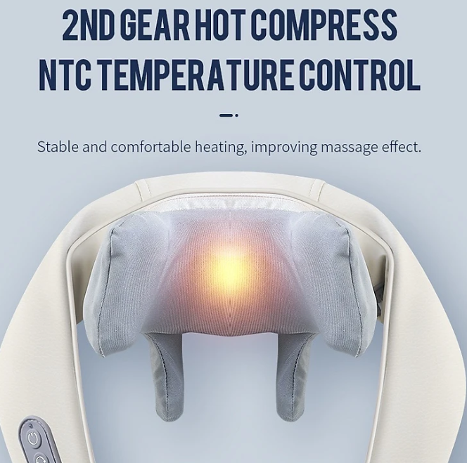 - Tích hợp công nghệ chườm nóng kiểm soát nhiệt NTC không tiếp xúc trực tiếp với cơ thể giúp diện tích chườm nóng rộng, nhiệt độ đều và ổn định. Kết hợp với chức năng massage chính giúp tăng hiệu quả sản phẩm và trải nghiệm người dùng