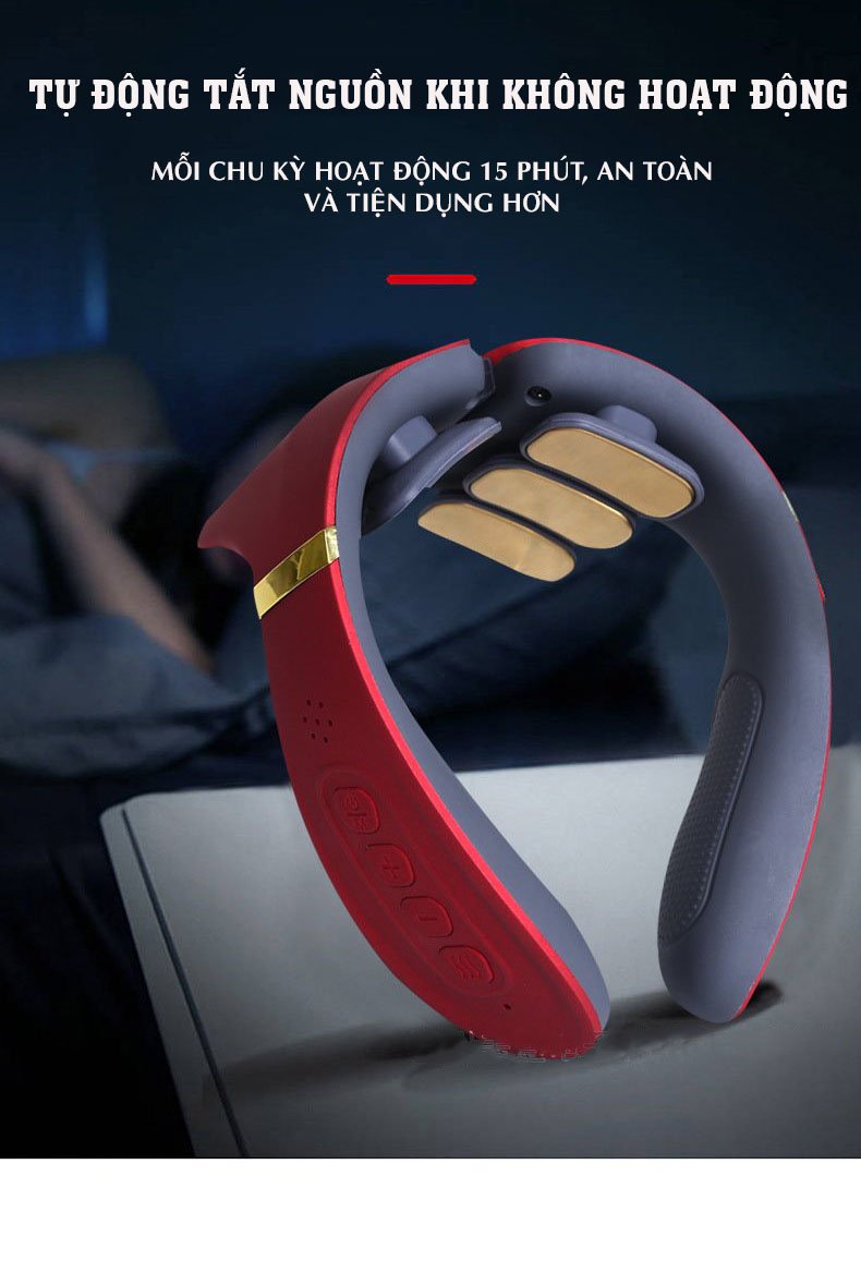 - Máy massage cổ thông minh hoạt động dựa trên nguyên lý xung điện từ trường, tạo sự thoải mái khi sử dụng